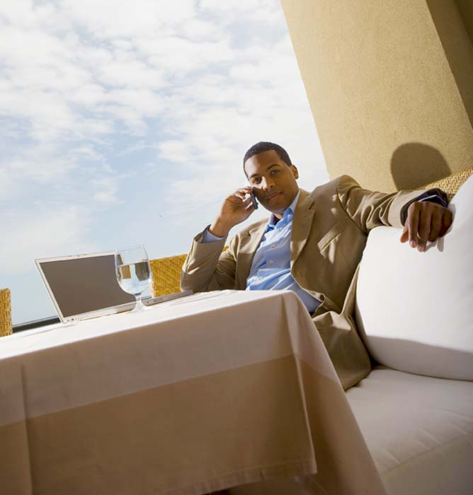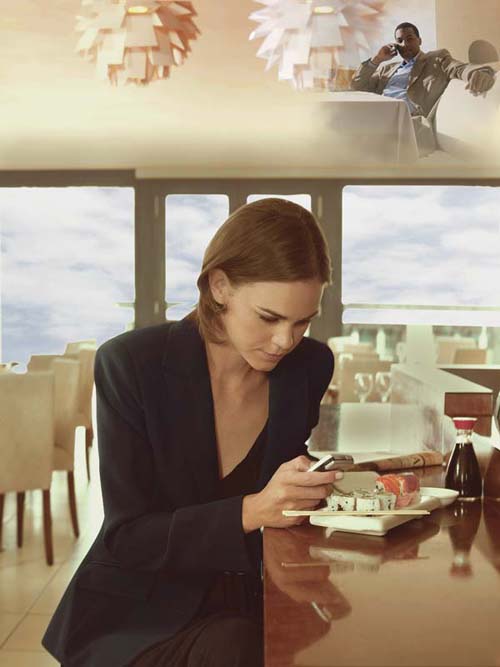 The object here was to harmonize the color schemes in both images. The other task was to add in another light fixture over the woman at the bar. Adding the man in at the top might also have been part of it. I also added in a sky, similar to the one in the man’s photo, to the one with the woman. I went with the warmer tints in the image with the man.