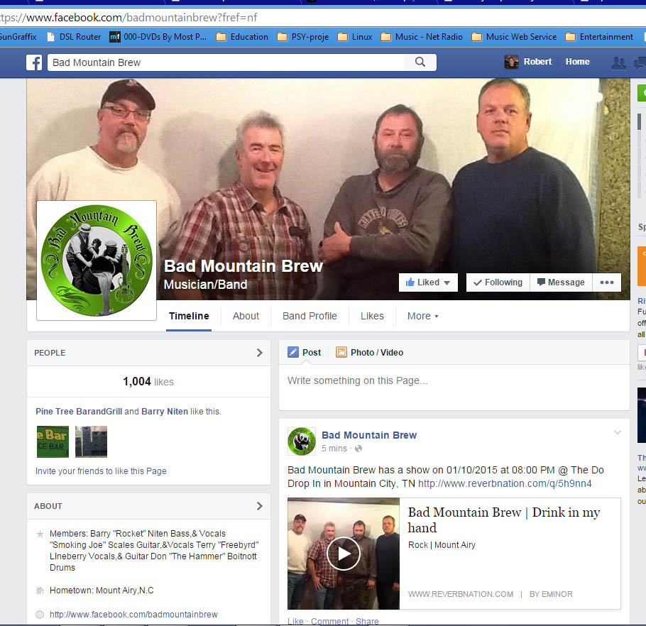 Both sets of these images use a zoom feature. The ones at the bottom do not. You can click to see an enlargement. The first set was an assignment to create a logo for the No Fuss Gourmet. I enjoyed using some humor there. During the time I was taking the class, a friend of mine asked if I could design a logo for his band. I originally did it in the gold color scheme, but he wanted green so he got green. Below are a couple of pictures of the band. That’s Barry on the right in both pictures. We operated various sized brake presses together in a machine shop for a couple of years.